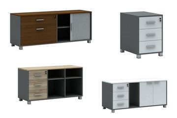 Kontener podporowy KP3 prawy lub lewy 160x45x66h DANE TECHNICZNE: Kontener podporowy stanowi uzupełnienie mebli pracowniczych. Wysoka funkcjonalność. Wieniec, fronty szuflad i drzwi wykonane z płyty melaminowej o grubości 18 mm. Zamek centralny. Uchwyt metalowy R1, 2-punktowy w rozstawie 128 mm. Standardowo oferujemy uchwyty satynowe bez dopłaty. Pozostałe kolory są dostępne za dodatkową opłatą, szczegóły w konfiguratorze. Metalowa stopka 40x40x60 mm. Prowadnice do wyboru w konfiguratorze: prowadnica rolkowa, fronty szuflad i drzwiczek z uchwytami - standard prowadnica samodomykająca, fronty szuflad i drzwiczek z uchwytami - za dopłatą prowadnica push to open, fronty szuflad i drzwiczek bez uchwytów - za dopłatą WYMIARY: KOLORYSTYKA: Według konfiguracji modelu. TERMIN: Towar na zamówienie. Produkcja 2-5 tygodni. GWARANCJA: 24 miesiące. UWAGI: Koszty dostawy według indywidualnej kalkulacji -> więcej informacj na sklep@efekt-style.pl lub 518-746-929/ 501 677 990.
