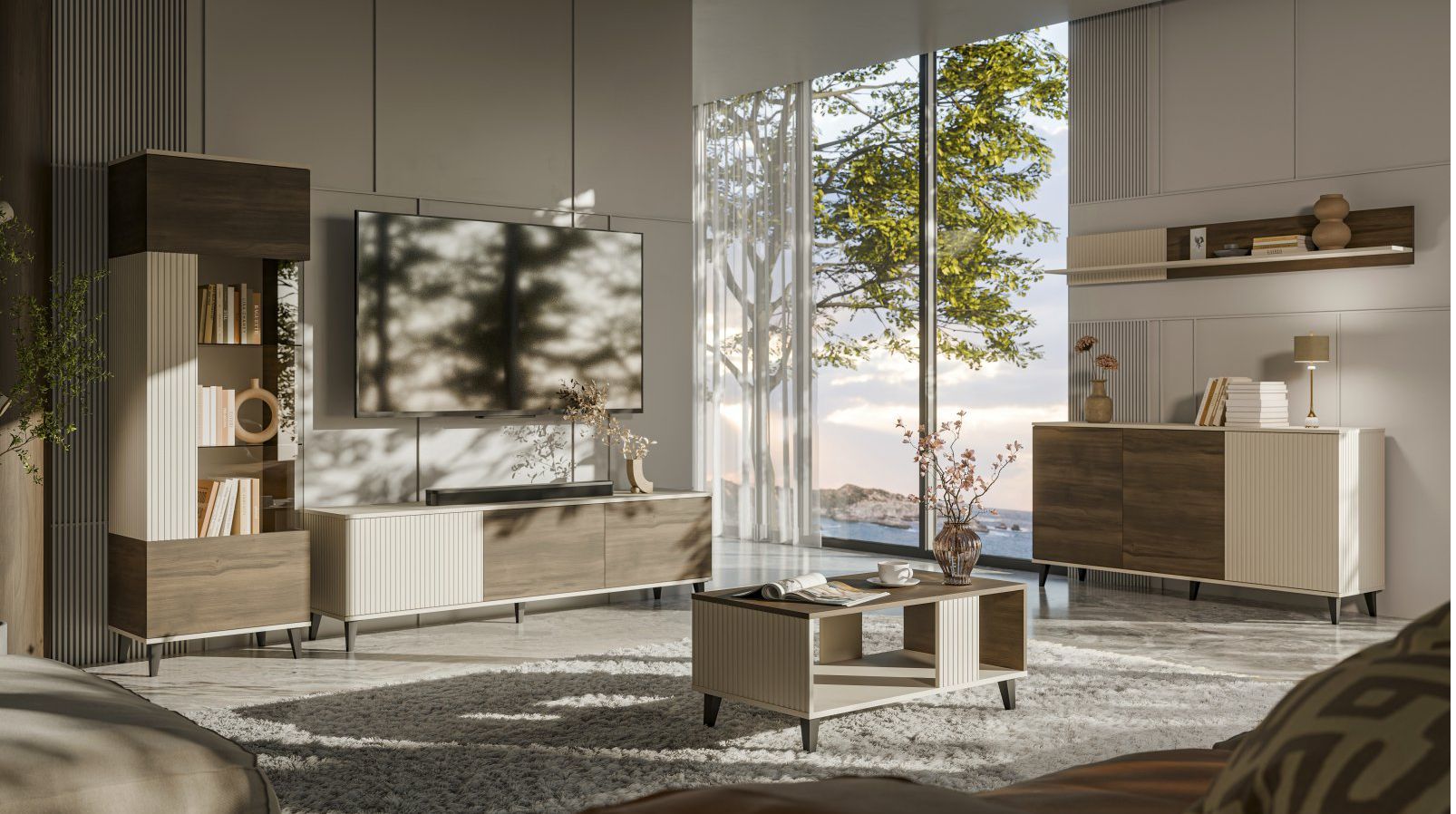 RANDOM 2 RTV-2 szafka RTV 180 cm kaszmir / orzech / czarny Szafka RTV RANDOM 2 RTV-2 – Nowoczesne Centrum Rozrywki w Większym Formacie z Kolekcją RANDOM! Przedstawiamy szafkę RTV RANDOM 2 RTV-2, która łączy w sobie stylowy design i funkcjonalność, idealnie dopasowując się do nowoczesnych salonów. Jej unikalne połączenie kolorystyczne kaszmiru, orzecha i czerni tworzy elegancki mebel, który stanie się centralnym punktem Twojej strefy rozrywki. Wyjątkowe Połączenie Kolorów i Detali: Szafka RTV RANDOM 2 RTV-2 charakteryzuje się nowoczesnym zestawieniem subtelnego kaszmiru i ciepłego odcienia orzecha, uzupełnionym o eleganckie, czarne nóżki. Jeden z frontów posiada ryflowaną strukturę w kolorze kaszmiru, dodając meblowi unikalnego charakteru i wizualnego zainteresowania. Funkcjonalność i Przestrzeń: Dzięki nowym wymiarom 180 cm szerokości, 40 cm głębokości i 52 cm wysokości, szafka RTV oferuje jeszcze większą przestrzeń na Twój telewizor oraz sprzęt audio-wideo. Zamknięte szafki pomogą ukryć kable i inne akcesoria, utrzymując porządek w Twoim salonie. Dodatkowe półki lub przegrody mogą zapewnić miejsce na dekoder, konsolę do gier czy piloty. Wysoka Jakość Materiałów: Szafka RTV została wykonana z wysokiej jakości materiałów: płyty meblowej okleinowanej oraz MDF okleinowanego, co gwarantuje jej trwałość i estetyczny wygląd na lata. Solidne nóżki z polipropylenu zapewniają stabilność i dodają nowoczesnego akcentu. Stwórz Kompletną Aranżację z Kolekcją RANDOM: Z przyjemnością informujemy, że w naszej ofercie dostępna jest pełna kolekcja mebli RANDOM. Odkryj różnorodność stylowych i funkcjonalnych brył w tej samej, unikalnej palecie kolorystycznej. Dzięki temu z łatwością zaaranżujesz spójne i eleganckie wnętrze w całym swoim domu! Specyfikacja Produktu: Nazwa: Szafka RTV RANDOM 2 RTV-2 Typ: Szafka RTV Wymiary: 180/40/52 cm (szerokość/głębokość/wysokość) Materiał: MDF okleinowany / płyta meblowa okleinowana / polipropylen Kolor: Kaszmir - orzech - czarny Gwarancja: 24 miesiące Ważne Informacje: Podane wymiary mogą się różnić o +/- 1-2%. Szafka RTV dostarczana jest w elementach do samodzielnego montażu. Instrukcja montażu znajduje się w przesyłce. Na produkt udzielamy 24-miesięcznej gwarancji. Zapraszamy do zakupu szafki RTV RANDOM 2 RTV-2 oraz do zapoznania się z całą kolekcją mebli RANDOM, aby stworzyć wymarzoną i harmonijną przestrzeń w Twoim domu!