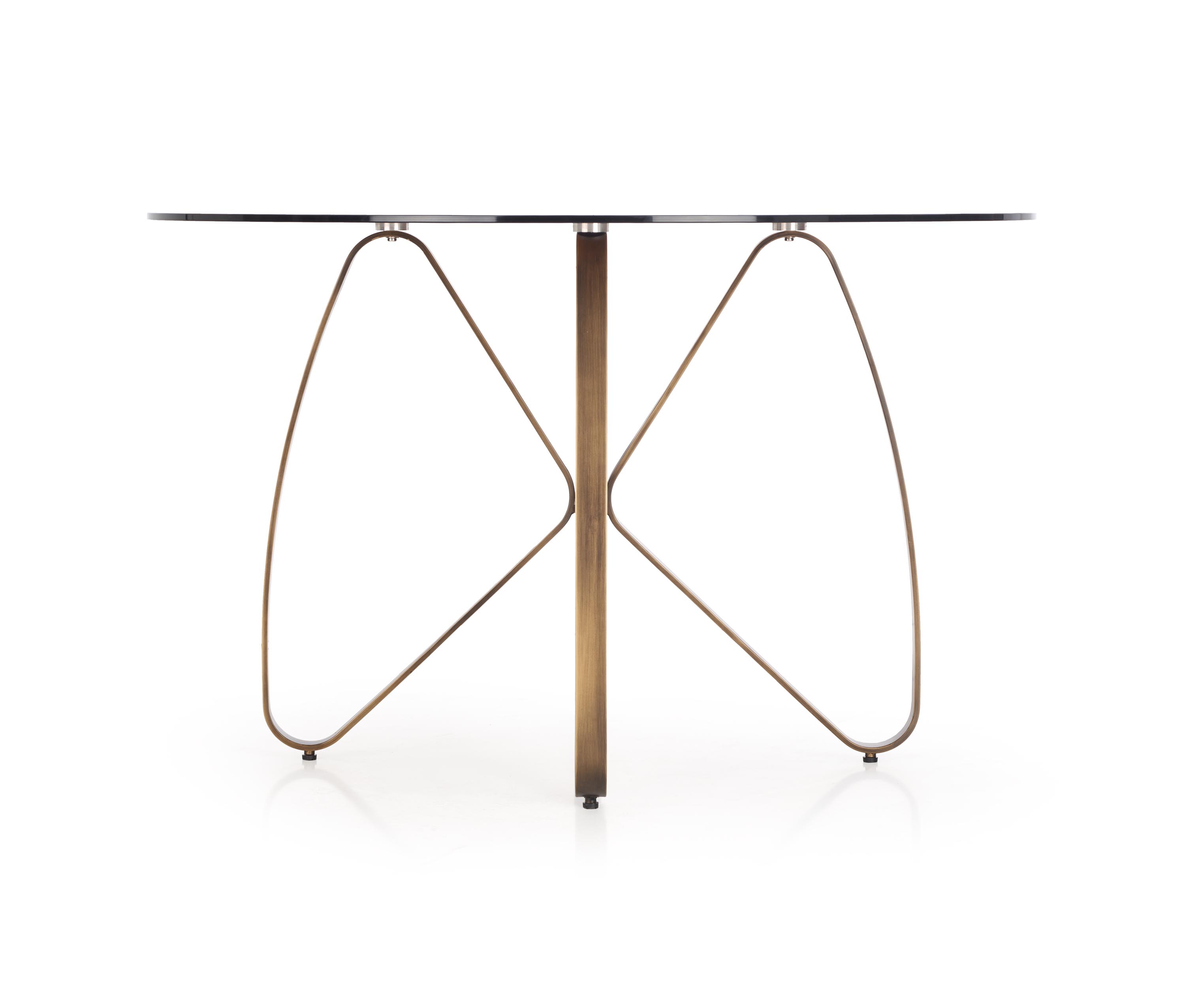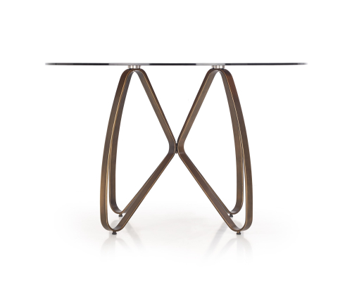 wymiary: O120/76 cm, materiał: szklo / stal malowana, kolor: blat - brązowy, nogi - antyczny złoty