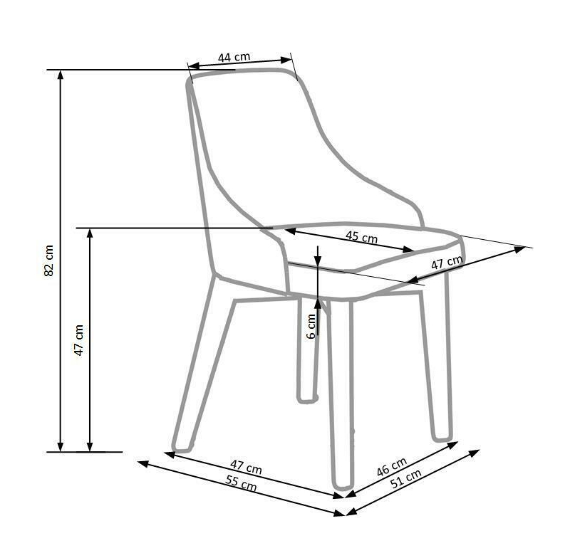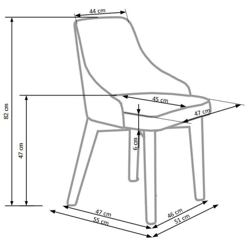 • Wymiary: 51 cm (szerokość) / 55 cm (głębokość) / 82 cm (wysokość) / 47 cm (wysokość siedziska)