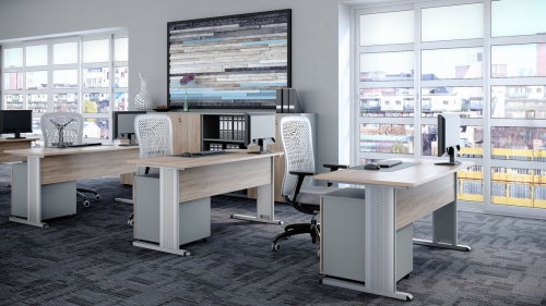 Biurko na stelażu metalowym wykonane z wysokiej jakości płyty laminowanej, o wymiarach 160x70x76h.