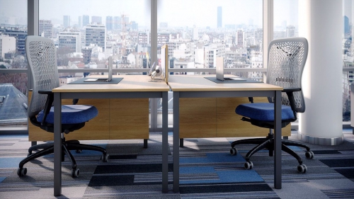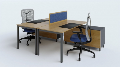 Biurko na stelażu metalowym na nogach z profila o wym. 50x50mm wykonane z wysokiej jakości płyty laminowanej.