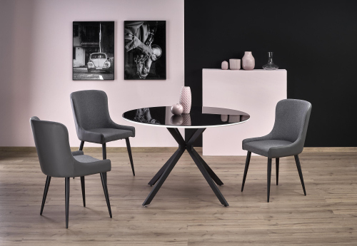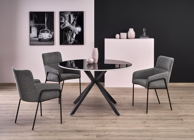 | Stół AVELAR to idealne połączenie nowoczesnego designu oraz funkcjonalności, które wprowadzi elegancję do każdego wnętrza. Jego okrągły kształt o średnicy 120 cm sprawia, że doskonale sprawdzi się w mniejszych przestrzeniach, jednocześnie zapewniając wystarczająco dużo miejsca dla rodziny lub gości. Wykonany z materiałów najwyższej jakości, stół łączy w sobie szkło, lakierowany MDF oraz stal malowaną proszkowo, co gwarantuje trwałość i stylowy wygląd. - Wymiary: fi120/76 cm