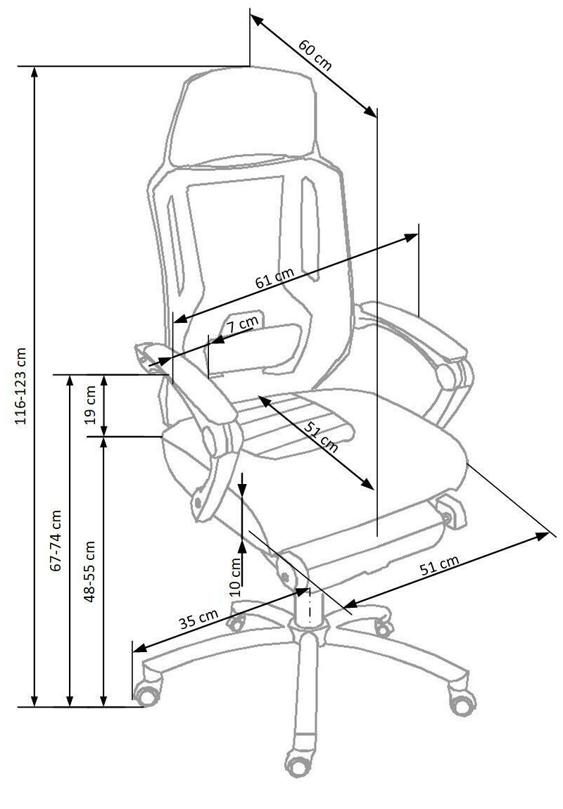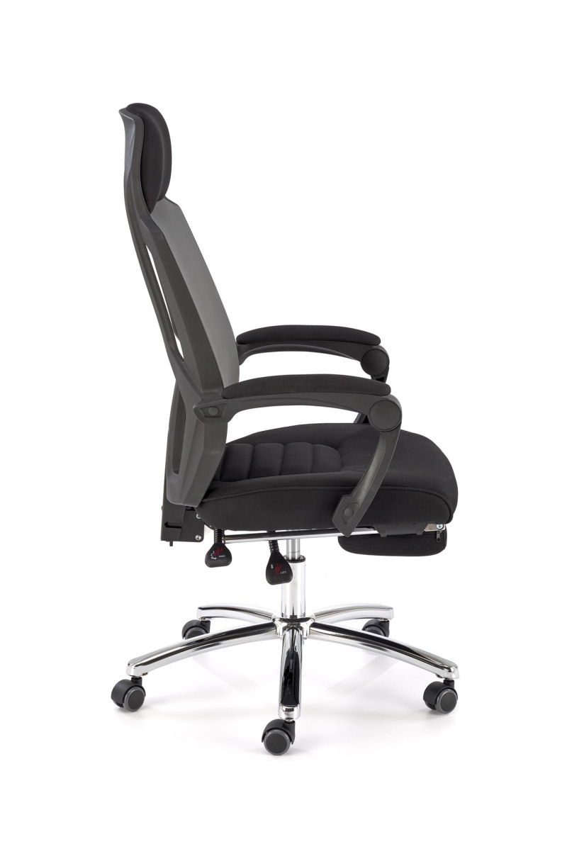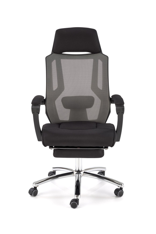 wymiary: 65/70-110/110-118/45-53 cm, mechanizm TILT / wysuwany podnóżek, tkanina membranowa / siatka, kolor: czarno - popielaty