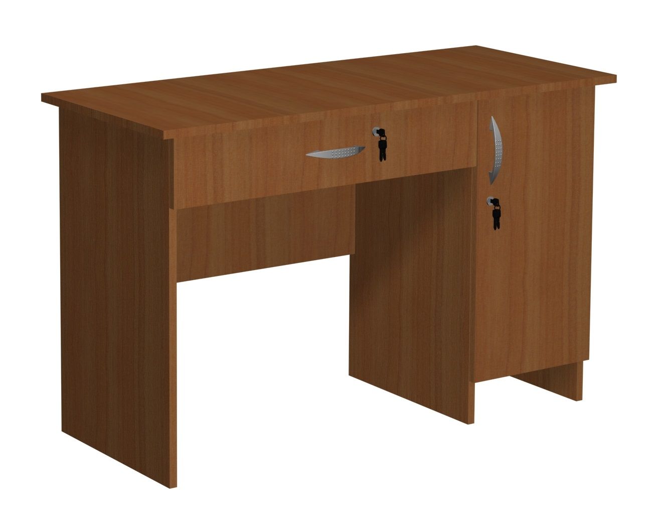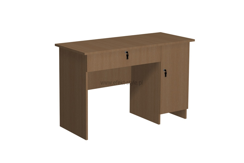 Biurko jednoszafkowe Kujawiak. Wykonane z płyty laminowanej 18 mm, oklejonej obrzeżem PCV. Szuflada i szafka zamykana na zamek z 2 kluczami.