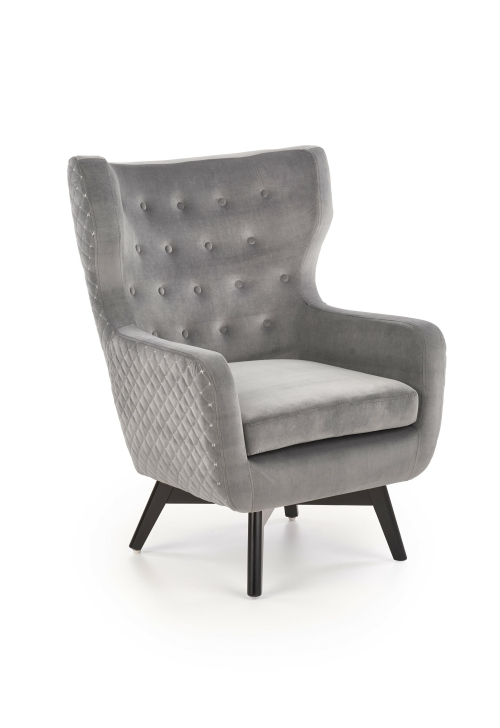 Fotel wypoczynkowy MARVEL to wyjątkowy element, który łączy w sobie elegancję oraz komfort. Jego popielata tapicerka z tkaniny o wysokiej jakości, w połączeniu z czarnymi, litego drewna nogami, tworzy harmonijną całość, idealnie wpasowującą się w różnorodne aranżacje wnętrz. Fotel został zaprojektowany z myślą o wygodzie oraz estetyce, co sprawia, że każda chwila spędzona w nim to prawdziwa przyjemność.