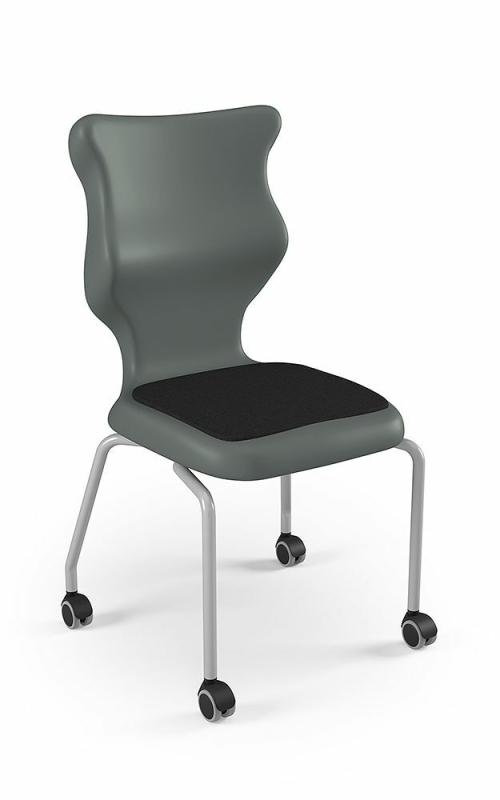 Posiada kółka miękkie umożliwiające ruch krzesła zarówno po powierzchniach twardych jak i wykładzinach.