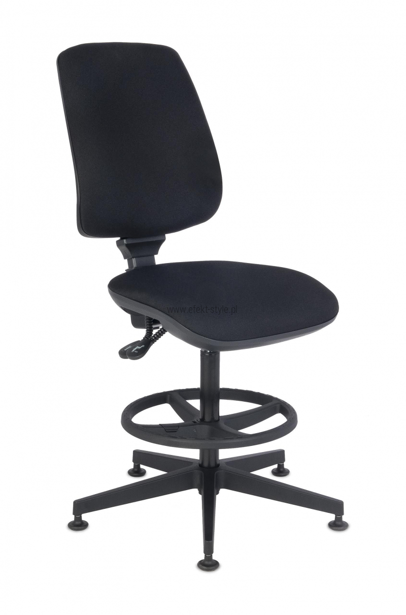 Ergonomiczne krzesło specjalistyczne z wyraźnie profilowanym oparciem oraz siedziskiem, świetnym mechanizmem i regulowanym PODNÓŻKIEM. Duży zakres regulacji wysokości siedziska sprawia, że krzesło sprawdzi się przy wysokich ladach, stołach, biurkach, recepcjach.