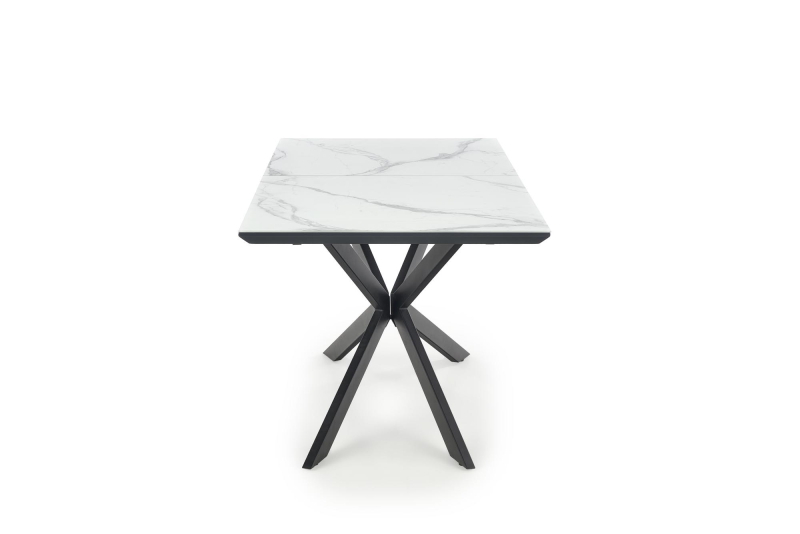 stół rozkładany, wymiary: 160-200/90/76 cm, materiał: ceramika / MDF lakierowany / stal malowana proszkowo, kolor: blat - biały marmur / ciemny popiel, nogi - czarny
