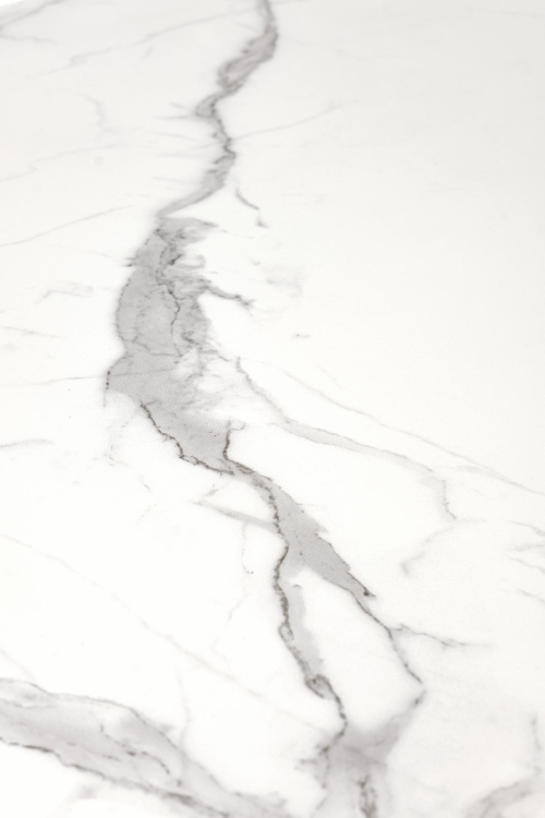 • Kolorystyka: harmonijne połączenie białego marmuru z ciemnym popielem oraz czarnymi nogami, co sprawia, że stół będzie pasował do wielu aranżacji wnętrz.
