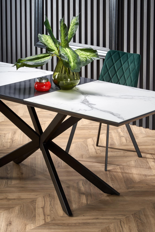 DIESEL stół rozkładany 160-200/90/76 cm,  blat - biały marmur / c. popiel, nogi - czarny