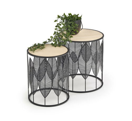 wymiary: 40/45 cm oraz 33/40 cm, materiał: MDF okleinowany / stal malowana proszkowo, kolor: naturalny - czarny