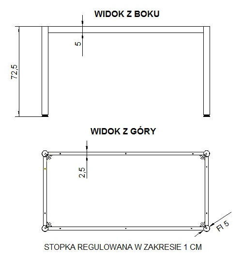 • nogi wyposażone są w regulowane stopki w zakresie 1 cm