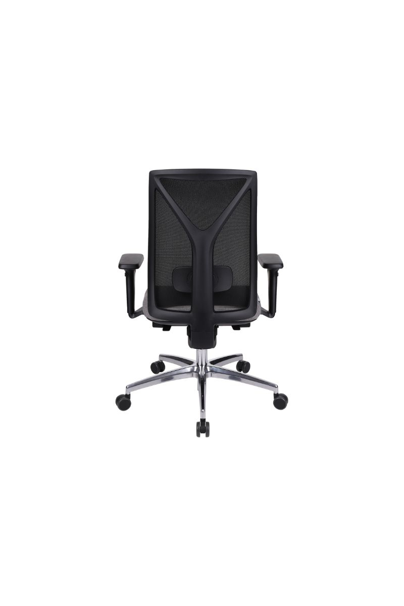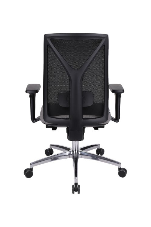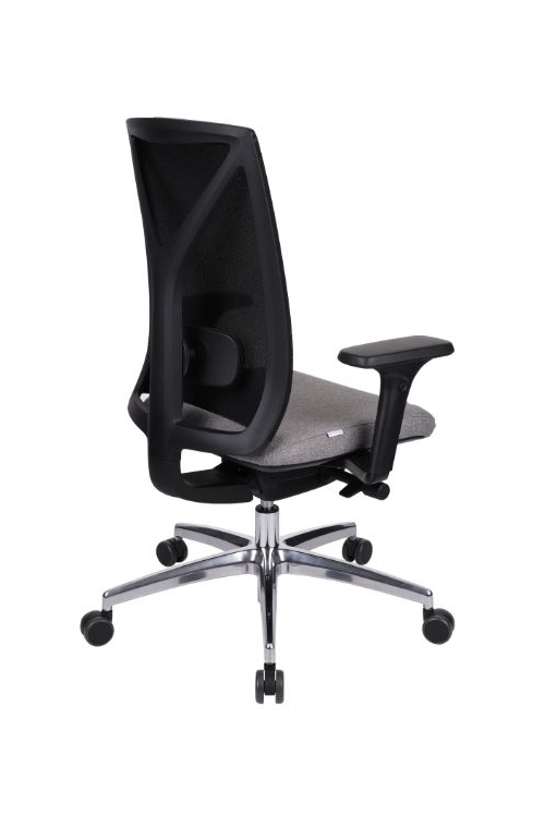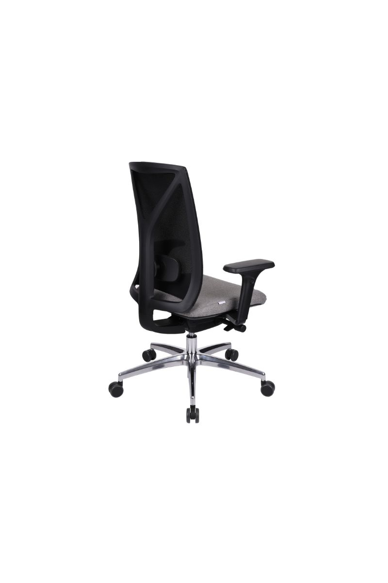 Oparcie fotela Valio BS tapicerowane jest przyjemną w dotyku i wyjątkowo odporną na użytkowanie siatką Runner w kolorze czarnym, która zapewnia przewiewność oparcia, a także dobrze dopasowuje się do kształtu pleców. Model ten posiada regulację wysokości oparcia i dopasowania jej do wzrostu użytkownika.