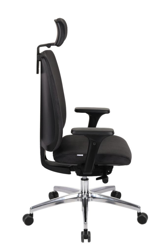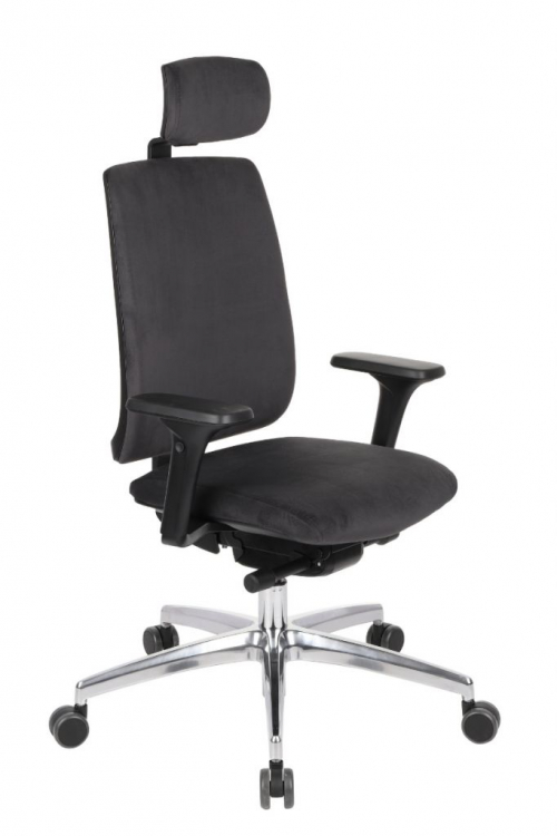 Oparcie fotela tapicerowane jest wybraną tkaniną z szerokiej oferty. Do dyspozycji trwałe tkaniny biurowe wyróżniające się bardzo wysoką ścieralnością i pilingiem, tkaniny łatwoczyszczące, hydrofobowe o właściwościach utrudniających wchłaniania płynów, a także tkaniny przyjazne zwierzętom o większej odporności na zadrapania. Model ten posiada regulację wysokości oparcia i dopasowania jej do wzrostu użytkownika.