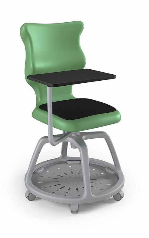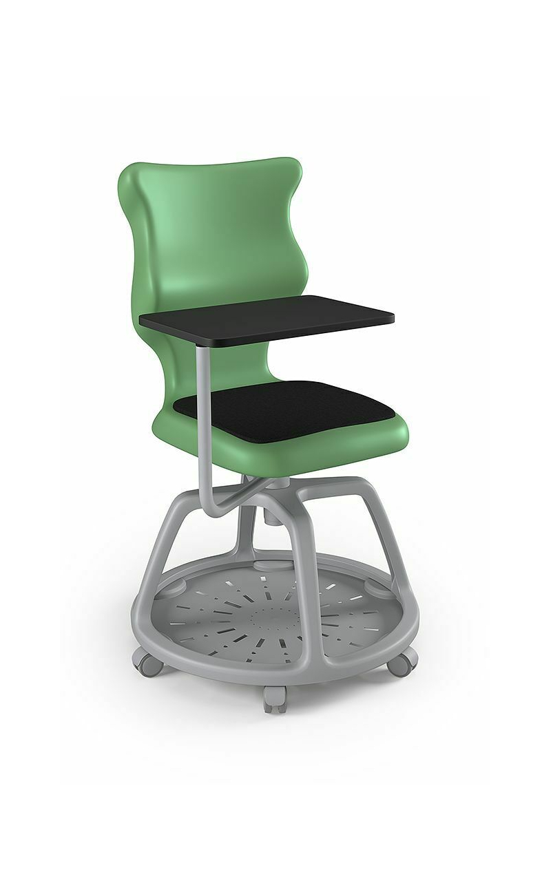 Pocket to połączenie ergonomicznego siedziska z tworzywa sztucznego z funkcjonalną podstawą w kolorze szarym umożliwiającą maksymalne wykorzystanie przestrzeni pod krzesłem. Dodatkowo posiada pulpit. Szeroka paleta kolorystyczna umożliwia dobór krzesła do każdego rodzaju wnętrza edukacyjnego. Model posiada tapicerowaną nakładkę na siedzisko w kolorze czarnym. Produkt zaprojektowany i wyprodukowany w Polsce. W zestawie znajdują się kółka twarde umożliwiające ruch krzesła po powierzchniach twardych.