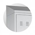 Szafa szkolna ubraniowa wyposażona jest w każdym z trzech pionów w półkę górną i dolną na książki i przybory szkolne, wieszaki boczne oraz drążek na wieszaki ubraniowe. Szafa wykonana jest z blachy czarnej o grubości 0,6 - 1,5 mm, malowana farbami proszkowymi (epoksydowo-poliestrowymi). Drzwi zamykane są zamkiem krzywkowym w systemie MASTER KEY. Całość osadzona na cokole wykonanym z blachy ocynkowanej (malowanej) o grubości 1,0 mm.