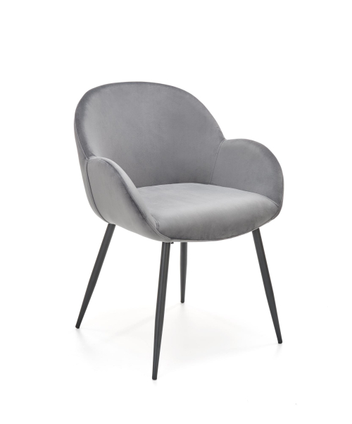 Krzesło K480 w kolorze popielatym to idealny wybór dla osób szukających elegancji i komfortu w jednym. Wykonane z wysokiej jakości tkaniny velvet, zapewnia nie tylko estetyczny wygląd, ale również przyjemność użytkowania. Stylowe krzesło z pewnością stanie się ozdobą każdego wnętrza, zarówno w jadalni, jak i w przestrzeni biurowej.