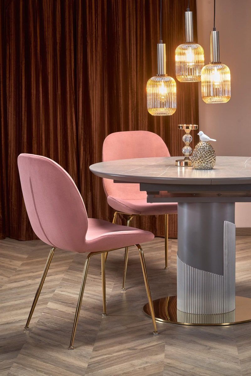 | Stół rozkładany MUSCAT to doskonałe połączenie elegancji i funkcjonalności, idealne do nowoczesnych wnętrz. Dzięki możliwości rozkładania, możesz łatwo dostosować jego rozmiar do swoich potrzeb, co czyni go idealnym rozwiązaniem na rodzinne obiady czy przyjęcia ze znajomymi. Jego wymiary, wynoszące 120-160 cm średnicy oraz wysokość 76 cm, sprawiają, że stół zmieści się w różnych przestrzeniach, zachowując jednocześnie komfort dla gości. - Blat: wykonany z eleganckiej ceramiki w kolorze popielatego marmuru, który dodaje luksusowego wyglądu.
