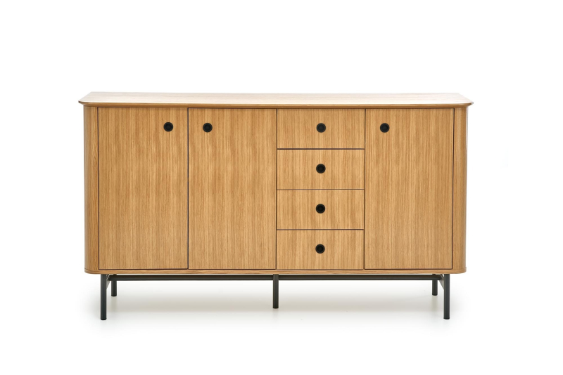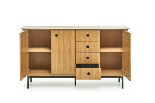 Komoda SMART KM-1 to doskonałe połączenie nowoczesności i funkcjonalności, które idealnie wpisuje się w trendy współczesnego wzornictwa. Jej minimalistyczny design oraz stonowana kolorystyka dąb naturalny i czarny sprawiają, że stanowi wyjątkowy element dekoracyjny każdego wnętrza, od salonu po jadalnię.