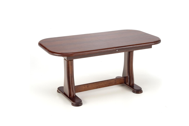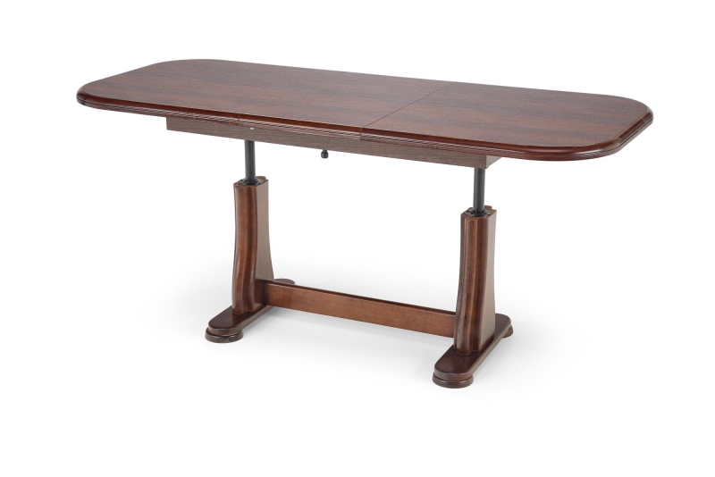 wymiary: 125÷164/65/60÷72 cm; materiał: blat - MDF laminowany, nogi - drewno bukowe, kolor: ciemny orzech