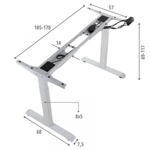Stelaż PRATO 04-2T/W z elektryczną regulacją wysokości w zakresie 69-117 cm kolor biały/ 2-silnikowy