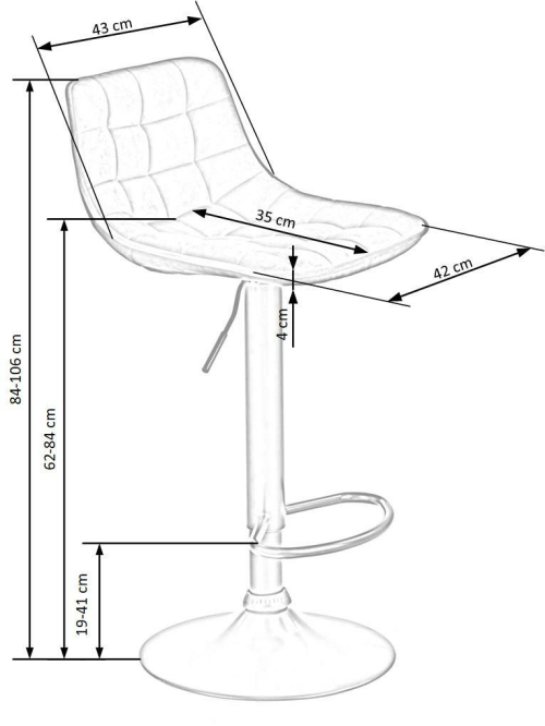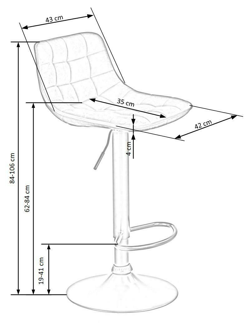 Model ten charakteryzuje się stalową, malowaną proszkowo podstawą, co zapewnia nie tylko stabilność, ale i nowoczesny wygląd. Siedzisko wyróżnia się eleganckim, quiltowanym wzorem, który podkreśla jego unikalny styl. Dodatkowo, hoker H95 posiada regulowaną wysokość w zakresie od 84 do 106 cm, co czyni go bardzo funkcjonalnym elementem wyposażenia, który można dostosować do różnych potrzeb.
