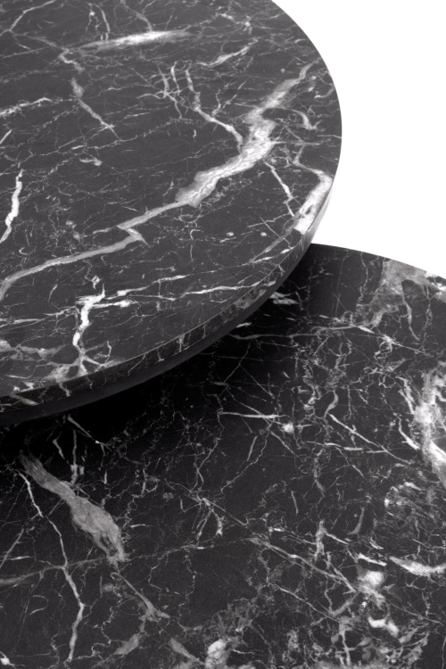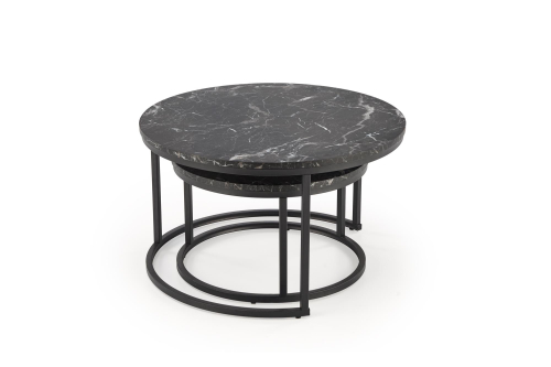 wymiary: 79/47 cm oraz 59/37 cm; zestaw 2 ław, materiał: MDF okleinowany / stal malowana proszkowo, kolory: czarny marmur / czarny