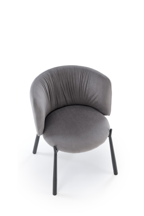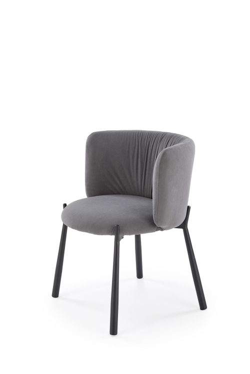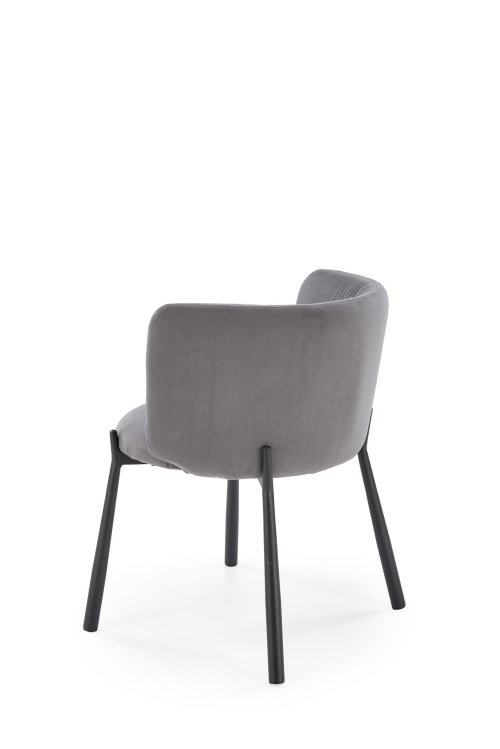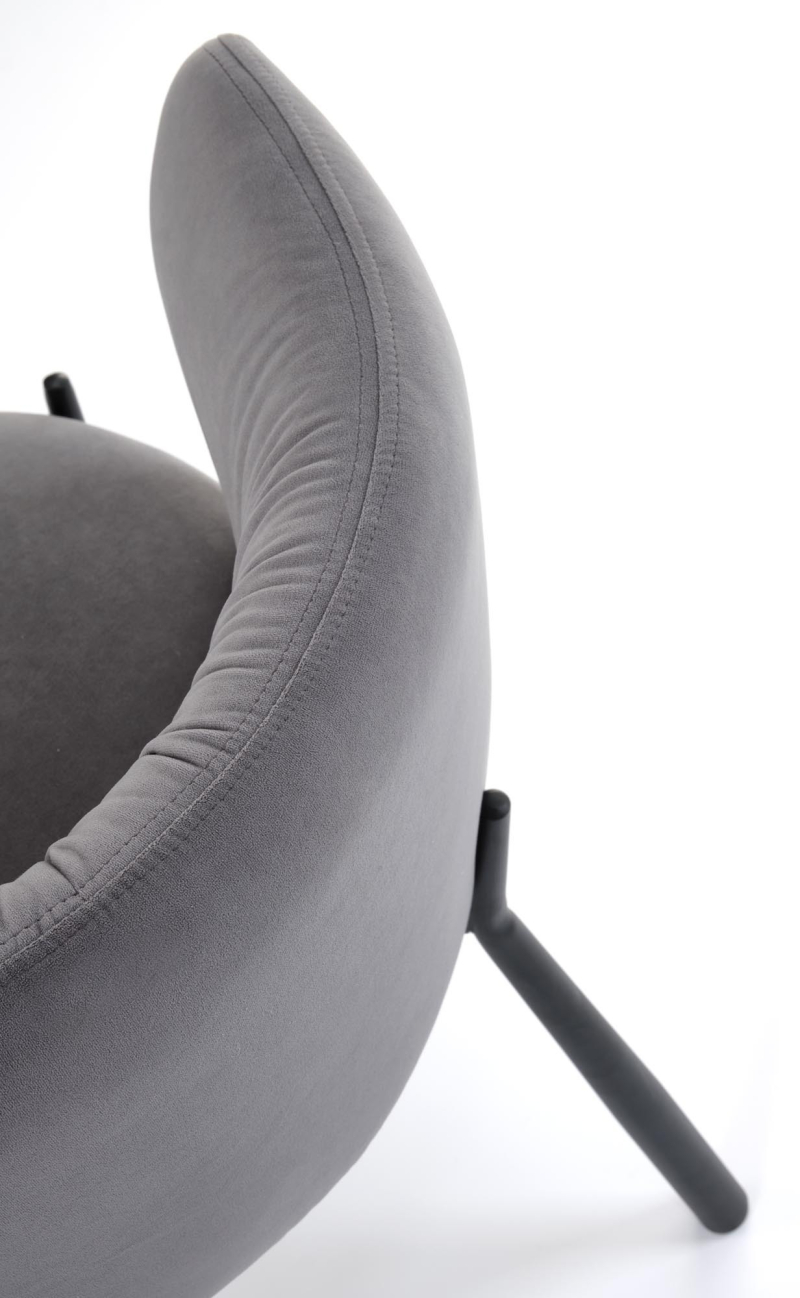 Wygodne siedzisko i oparcie krzesła zaprojektowane zostały z myślą o maksymalnym komforcie. Posiadają miękką, lekko uformowaną konstrukcję, która zapewnia odpowiednie podparcie pleców, co sprawia, że nawet długotrwałe użytkowanie staje się przyjemnością. Popielaty odcień tkaniny velvet dodaje krzesłu elegancji, a jednocześnie łatwo komponuje się z innymi kolorami i stylami wystroju wnętrz, od skandynawskiego po industrialny.