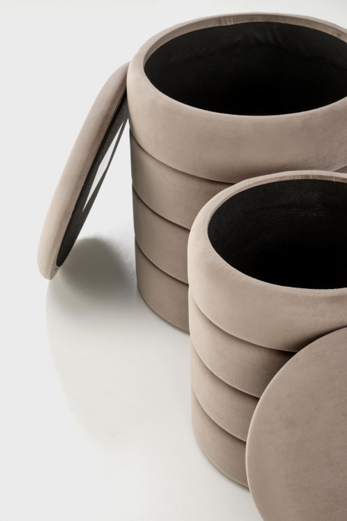 - Funkcja pojemnika: każdego z pufów można używać jako praktycznego schowka na drobiazgi, co przyczynia się do utrzymania porządku w każdym pomieszczeniu