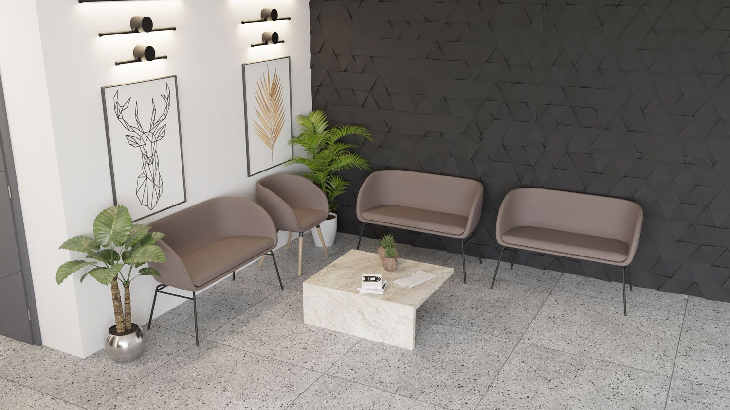 Sofa idealnie sprawdzi się w poczekalniach, recepcjach, hotelowych lobby czy pomieszczeniach biurowych.