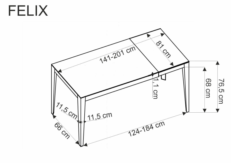 | Odkryj elegancję i funkcjonalność, jaką oferuje stół FELIX – idealny wybór do nowoczesnych wnętrz. Ten rozkładany stół to doskonałe rozwiązanie dla osób ceniących sobie zarówno estetykę, jak i praktyczność. Dzięki innowacyjnemu designowi i połączeniu materiałów, wprowadza on wyjątkowy styl do każdej jadalni. - Wymiary: 141-201/81/76/124-184 cm, co pozwala na dostosowanie rozmiaru do Twoich potrzeb.
