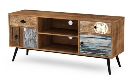 • Przechowywanie: zawiera dwie szuflady oraz otwarte półki, idealne do przechowywania mediów, pilotów i dekoracji.