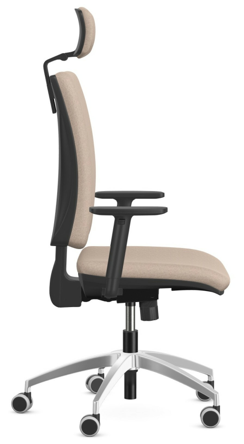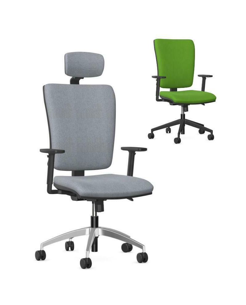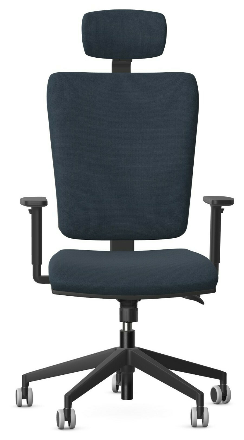 Ergonomiczny fotel obrotowy wyposażony w mechanizm synchroniczny oraz w regulowane podłokietniki w wersji z zagłówkiem lub bez zagłówka.
