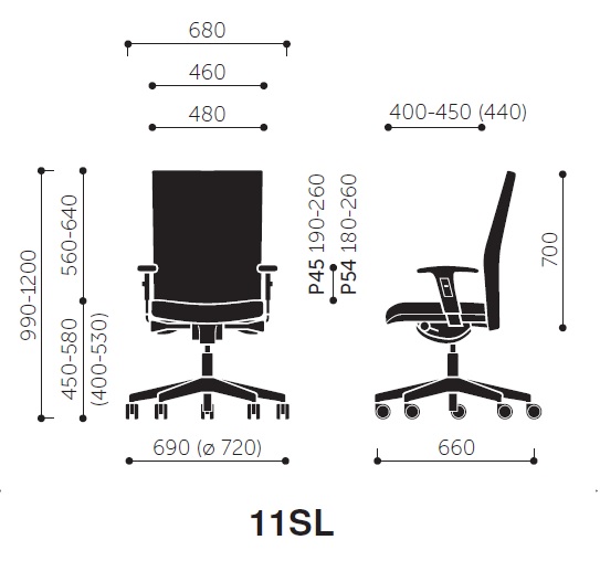 •  Podłokietnik P54PU - regulowany góra-dół (zakres regulacji 80 mm), nakładka poliuretanowa.