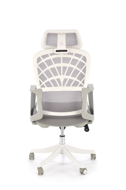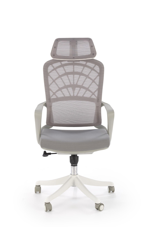wymiary: 59/59/115-121/45-51 cm; mechinizm TILT / regulowany zagłówek, tkanina / siatka, kolor: popielaty / biały