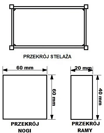 Przekrój stelaża Przekrój kwadratowy