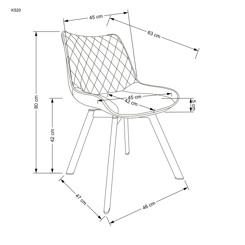 • Wymiary: 45/63/80/42 cm, co sprawia, że krzesło jest idealnie dopasowane do różnorodnych aranżacji.