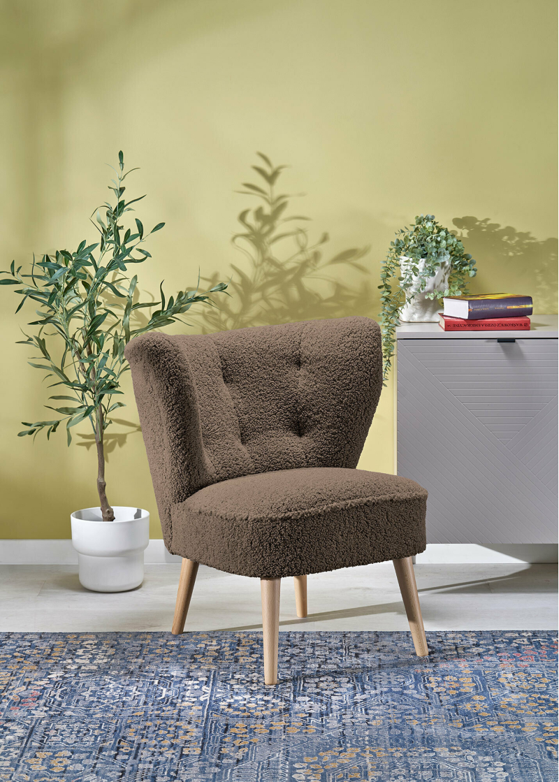 Odkryj fotel MOCCA, który zachwyca swoją przytulnością i oryginalnym designem. Obity miękką tkaniną i wsparty na naturalnych drewnianych nogach, stanie się ulubionym miejscem do wypoczynku w Twoim domu.