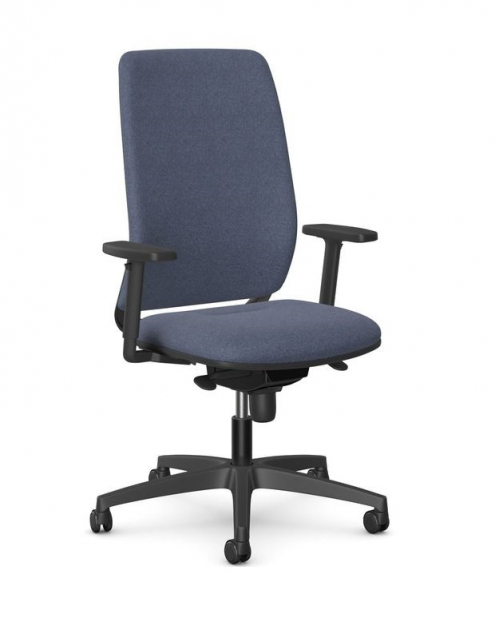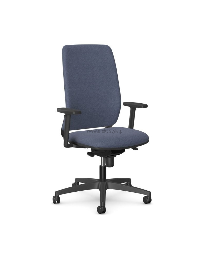 Nowoczesny fotel obrotowy wyposażony w mechanizm synchroniczny, regulowane podłokietniki i inne funkcje ułatwiające dopasowanie fotela do sylwetki użytkownika.
