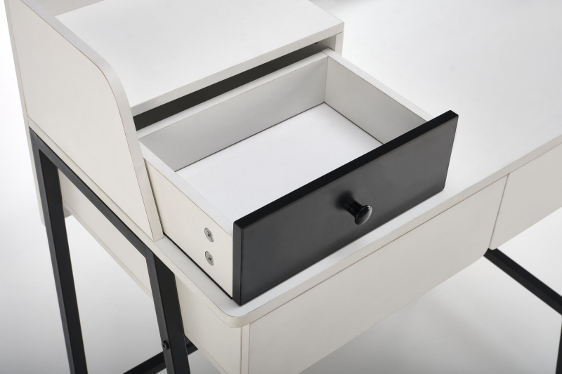 Konsolka AGNES posiada trzy szuflady, w tym jedną w kontrastowym, czarnym kolorze, która nie tylko wyróżnia się wizualnie, ale również pozwala na uporządkowane przechowywanie drobnych przedmiotów. Połączenie bieli i czerni nadaje meblowi uniwersalny wygląd, który bez problemu wkomponuje się w wiele aranżacji wnętrz. Parametry produktu: