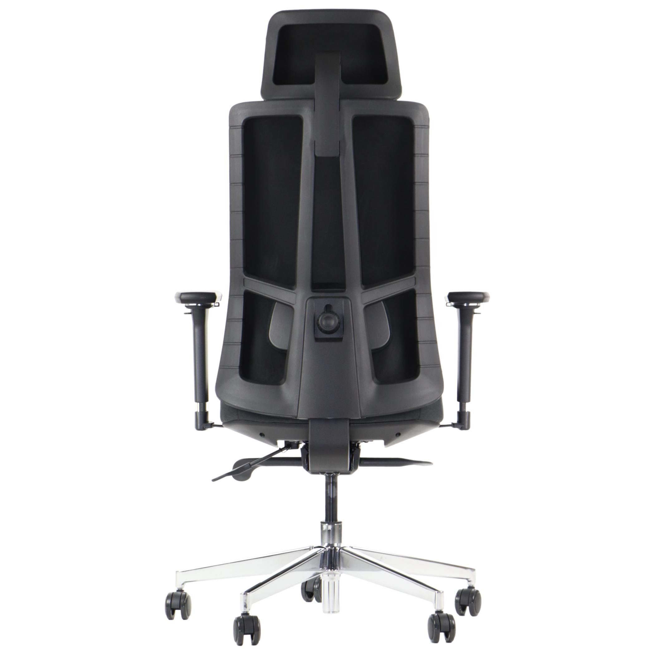 FOTEL OBROTOWY ERGOTHRONE Z PODNÓŻKIEM / CZARNY Dane techniczne: Zagłówek, oparcie i siedzisko tapicerowane wysokiej jakości siatką Mechanizm samoważący SYNCHRON Regulowane podłokietniki góra-dół, przód-tył, wychylenie na boki Regulowana wysokość oparcia i zagłówka Regulowana wysokość oparcia dla kręgów lędźwiowych Podstawa jezdna wykonana z lakierowanego aluminium w kolorze czarnym Fotel wyposażony w wygodny podnóżek (maksymalne obciążenie podnóżka do 45 kg) kolorystyka czarny Wymiary: Obciążenie 130 kg Gwarancja: 3 lata