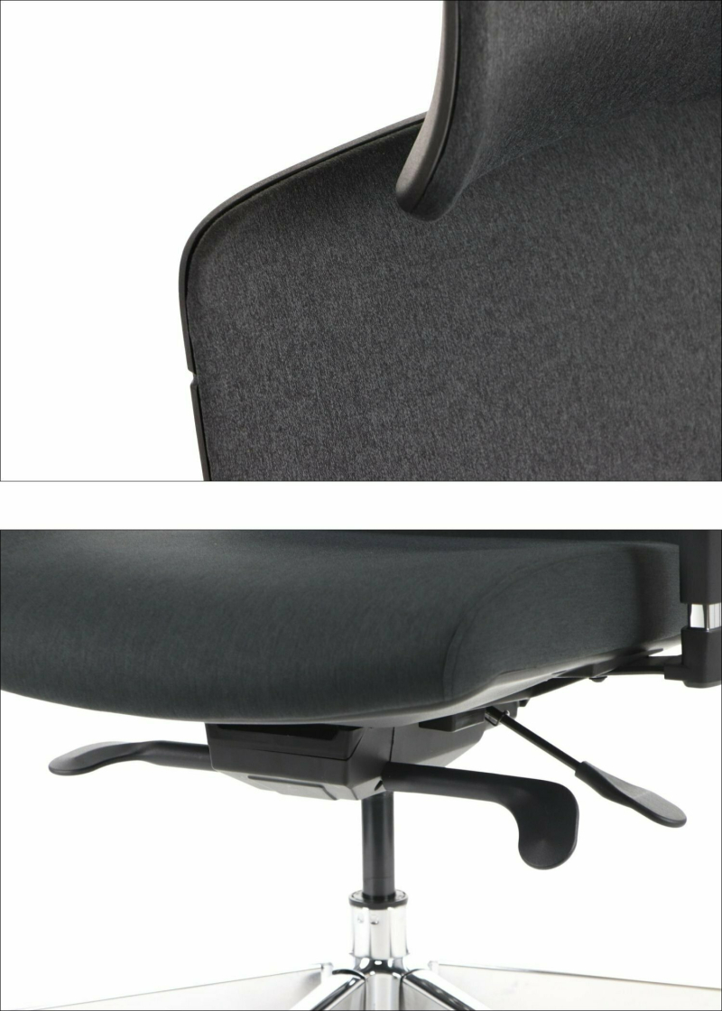Fotel biurowy ERGOFIX TM06 szary Mechanizm Synchroniczny mechanizm ruchowy (Synchro SELF). Po zwolnieniu blokady, oparcie wychyla się w ruchu synchronicznym z siedziskiem naśladując ruch użytkownika w krześle. Wychylenie oparcia podążające za ruchem pleców użytkownika jest znacznie wyraźniejsze i szybsze aniżeli ruch siedziska. Siła oporu jaki stawia oparcie podczas wychylenia jest automatycznie dobrana do wagi Użytkownika - to funkcja "SELF" mechanizmu Synchro. Użytkownik w każdej chwili ma również możliwość blokady wybranej pozycji wychylenia oparcia i siedziska poprzez ruch dźwigni umieszczonej pod siedziskiem. Funkcja ANTI-Shock zapobiega gwałtownemu uderzeniu oparcia w plecy Użytkownika po zwolnieniu wybranej pozycji wychylenia. Siedzisko Tapicerowane tkaniną TM, która jest miła w dotyku, oddychająca, odporna na peeling i ścieralność ponad 35 tyś cykli Martindalea. Tkanina zapewnia dobra cyrkulację powietrza, jest łatwa w utrzymaniu czystości. Kolor tapicerki - szary. Oparcie Tapicerowane jest siatką, która dobrze dopasowuje się do pleców Użytkownika i zapewnia odpowiednią cyrkulację powietrze. Kolor siatki - szary. Wyposażone: w profil lędźwiowy o regulowanej wysokości, zagłówek o regulowanym kącie położenia, który pozwala na ergonomiczne podparcie głowy podczas pracy. Podłokietniki Regulowane w trzech płaszczyznach (3D): góra dół: pozwala na dostosowanie jego wysokości tak aby przedramię ułożone było pod kątem 90 stopni do tułowia, co znacznie odciąża mięśnie pleców podczas długiej pracy w pozycji siedzącej. Zakres regulacji wysokości podłokietnika to 6 cm; kąt położenia nakładki w zakresie +/- 15 stopni (skierowanie nakładek do wewnątrz siedziska ułatwia pisanie na klawiaturze, zaś ich skierowanie na zewnątrz ułatwia swobodne wstawanie z krzesła); przód - tył: regulacja nakładki podłokietnika przód/tył pozwala dostosować go do długości przedramienia; Podstawa Pięcioramienna czarna - nylonowa podstawa jezdna o lekkiej nowoczesnej stylistyce. Kółka miękkie: do powierzchni twardych tj. panele, glazura Wymiary Atest Atest Wytrzymałości i Bezpieczeństwa Użytkowania wydany przez PUR Remodex Zakład Badań i Wdrożeń Przemysłu Meblarskiego. Sposób przeprowadzenia badań wg: PN-EN 1335-1:2004 PN-EN 1335-2:2009 PN-EN 1335-3:2009 Zgodnie z atestem: ,,UWAGA: dopuszczalne maksymalne obciążenie siedziska - 150 kg". Gwarancja 24 miesiące.