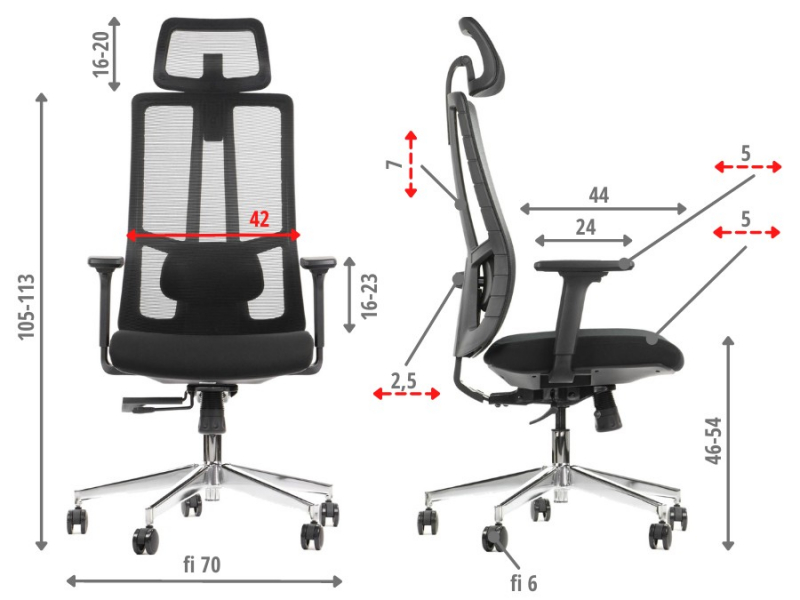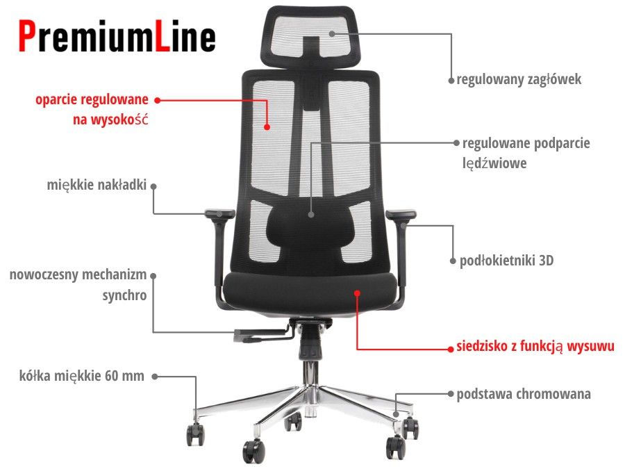 | Mechanizm fotela: | synchroniczny podstawowy, synchroniczny z wysuwem siedziska |