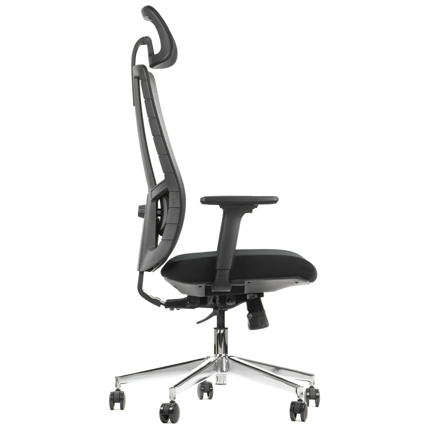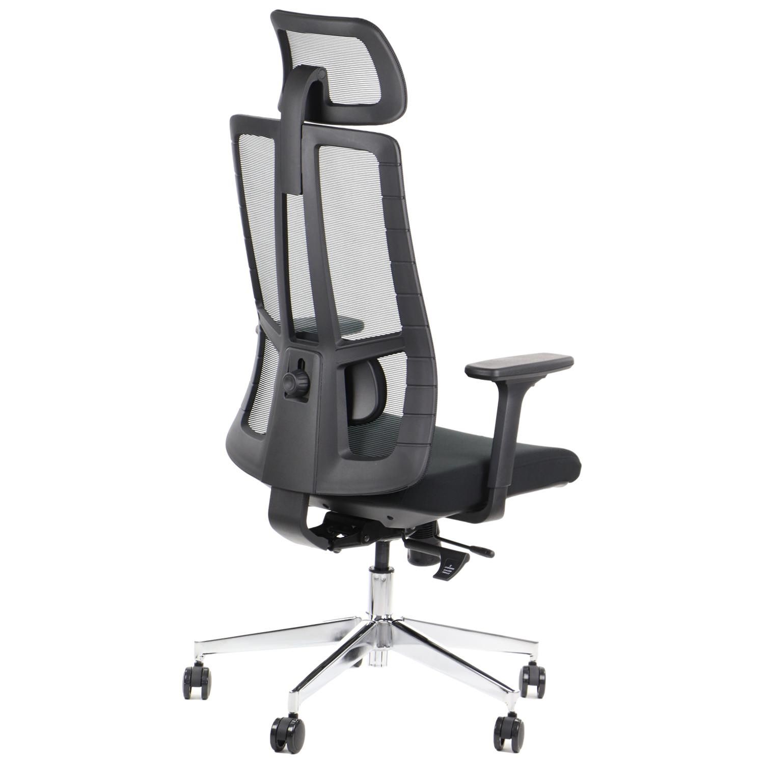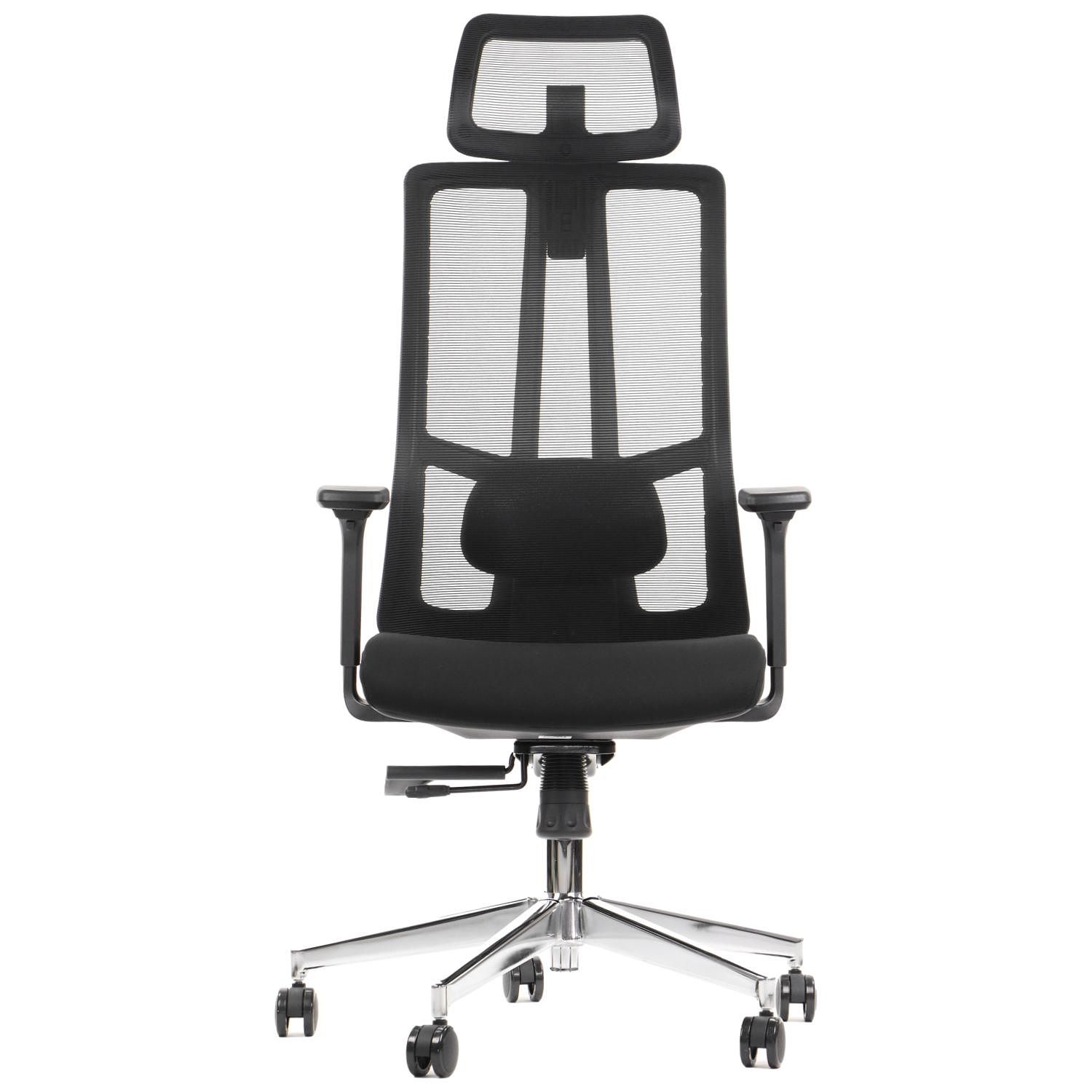 FOTEL OBROTOWY ERGOTHRONE Z PODNÓŻKIEM / CZARNY Dane techniczne: Zagłówek, oparcie i siedzisko tapicerowane wysokiej jakości siatką Mechanizm samoważący SYNCHRON Regulowane podłokietniki góra-dół, przód-tył, wychylenie na boki Regulowana wysokość oparcia i zagłówka Regulowana wysokość oparcia dla kręgów lędźwiowych Podstawa jezdna wykonana z lakierowanego aluminium w kolorze czarnym Fotel wyposażony w wygodny podnóżek (maksymalne obciążenie podnóżka do 45 kg) kolorystyka czarny Wymiary: Obciążenie 130 kg Gwarancja: 3 lata