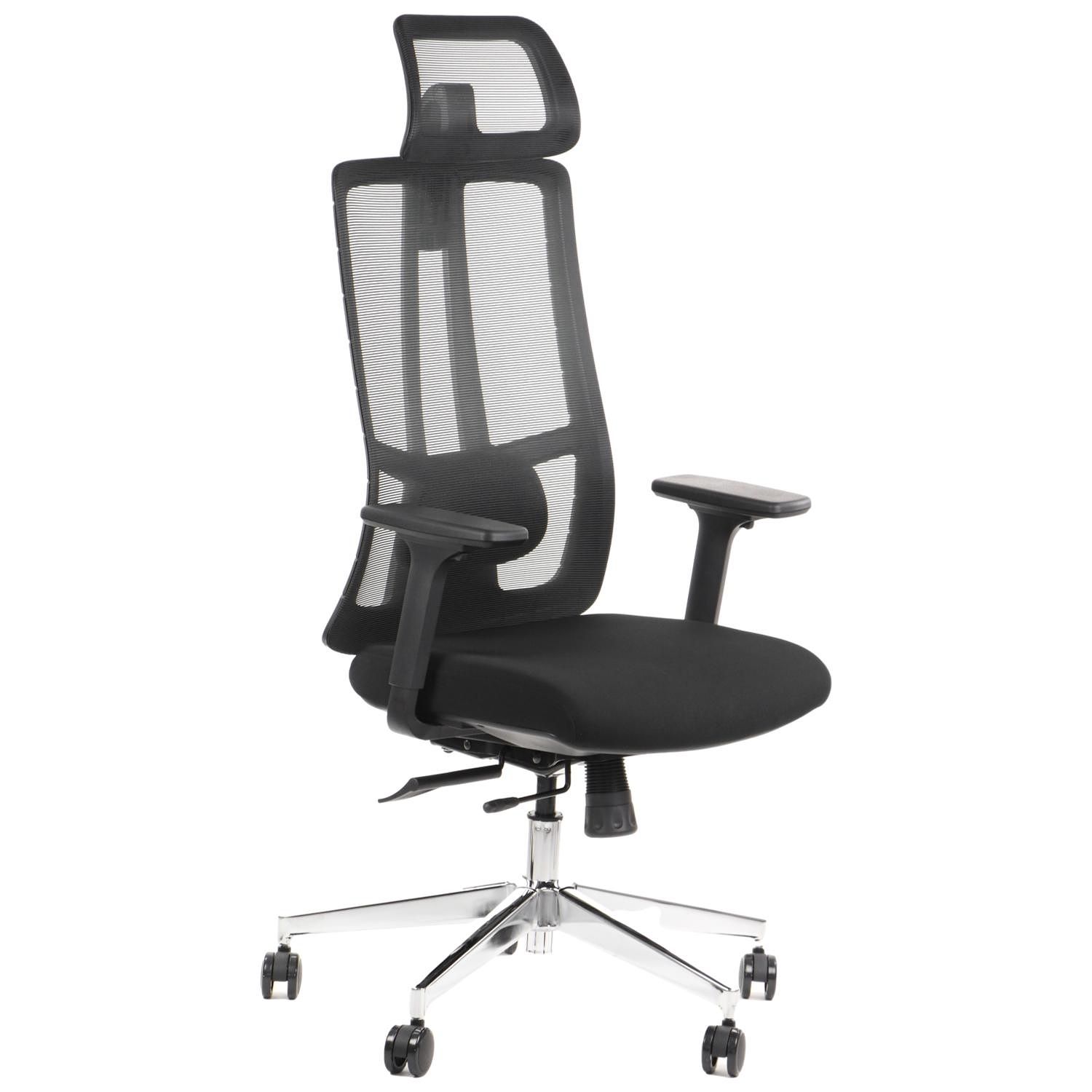 Fotel obrotowy TRENTFotel biurowy obrotowy TRENT z regulowanym zagłówkiem oraz z wysuwem siedziska w bardzo atrakcyjnej cenie. Wyposażony w dużą ilość ergonomicznych funkcji, które gwarantują komfortowe i wygodne użytkowanie.Fotel biurowy TRENT wyprodukowany jest według najlepszych standardów w świecie mebli biurowych.Zobacz prezentację tego modelu Opis techniczny fotela:SIEDZISKO:gąbka o dużej gęstości, tapicerowana tkaniną w kolorze czarnym OPARCIE:czarne, wykonane z przewiewnej siatki - ułatwiającej cyrkulacje powietrzawyposażone w wygodny wieszak np na marynarkęPodparcie lędźwiowe:sprężynujące - co bardzo ułatwia dobre dopasowanie odcinka lędźwiowego MECHANIZM synchroniczny:z możliwością blokady odchyłu w trzech pozycjachregulacja wysuwu siedziskapłynna regulacja wysokości siedziska ZAGŁÓWEKregulowany góra-dółPODŁOKIETNIKIregulowane 2D (góra-dół, przód-tył) z miękkimi (poliuretanowymi) nakładkami PODSTAWA I PODNOŚNIKpięcioramienna, stabilna chromowanapodnośnik klasy kółka miękkie przystosowane do powierzchni twardychWYMIARYWYMIARY PODANO Z DOKŁADNOŚCIĄ DO 1 CMZASTRZEGA SIĘ MOŻLIWOŚĆ ZMIANY WYMIARÓW W ZAKRESIE NIEPOWODUJĄCYM ZMIANY ISTOTNYCH CECH PRODUKTUFotel przeznaczony jest, zgodnie z obowiązującą normą PN-EN 1335-2:2009, do użytkowania przez 8h/dobę oraz na dopuszczalne obciążenie użytkowe do 110 kg.W przypadku użytkowania powyżej 8h/dobę lub obciążenia użytkowego powyżej 110 kg, należy zastosować fotele o wzmocnionej konstrukcji.