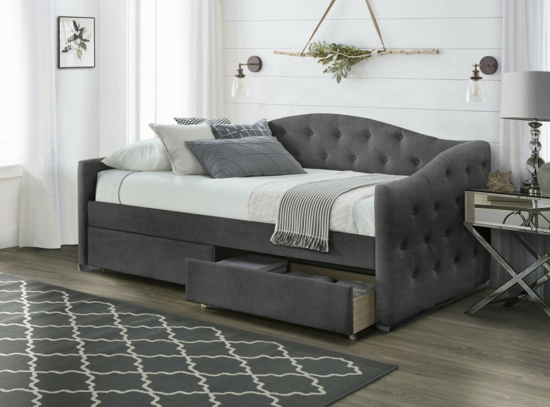 Łóżko ALOHA – Stylowe i Funkcjonalne Rozwiązanie do Twojego Wnętrza Przedstawiamy łóżko ALOHA, które łączy w sobie elegancki design z niezwykłą praktycznością, idealnie sprawdzając się zarówno w sypialni, pokoju młodzieżowym, jak i jako stylowy mebel wypoczynkowy w salonie. Ten wszechstronny mebel to doskonała propozycja dla tych, którzy cenią sobie wygodę i inteligentne rozwiązania do przechowywania. Charakterystyczny, wygięty kształt oparcia i podłokietników, ozdobiony eleganckim pikowaniem, nadaje łóżku ALOHA wyjątkowy urok i komfort. Całość obita jest przyjemną w dotyku tkaniną w modnym kolorze popielatym, która wprowadzi do każdego pomieszczenia nutę elegancji i spokoju. Solidna konstrukcja opiera się na połączeniu wytrzymałej tkaniny, płyt MDF oraz elementów plastikowych, zapewniając stabilność i trwałość. Wyjątkowym atutem łóżka ALOHA są dwie pojemne szuflady na kółkach, umieszczone pod stelażem. To idealne rozwiązanie do przechowywania pościeli, zabawek, książek czy innych przedmiotów, pomagając utrzymać porządek i maksymalnie wykorzystać dostępną przestrzeń. Łóżko sprzedawane jest bez materaca. Parametry produktu: