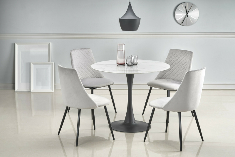 DENVER stół, blat - biały marmur, noga - biały Stół DENVER to idealna propozycja dla tych, którzy cenią sobie elegancję i nowoczesny design. Jego okrągły kształt oraz wyjątkowy biały marmurowy blat sprawiają, że stół doskonale wkomponuje się w różnorodne aranżacje wnętrz, dodając im klasy i stylu. Dzięki wysokiej jakości materiałom, stół jest nie tylko estetyczny, ale i funkcjonalny, co czyni go idealnym wyborem do jadalni czy salonu. Wymiary: średnica 80 cm, wysokość 73 cm - optymalne wymiary sprawiają, że stół jest idealny dla 3-4 osób. Materiał blatu: MDF okleinowany, co zapewnia trwałość i łatwość w utrzymaniu czystości, a elegancki wzór białego marmuru dodaje luksusowego charakteru. Noga: wykonana ze stali malowanej proszkowo, co gwarantuje stabilność oraz nowoczesny wygląd. Kolor: blatu - elegancki biały marmur, nogi - biały, co sprawia, że stół jest uniwersalny i pasuje do różnych stylów aranżacji. DENVER to stół, który łączy w sobie prostotę i funkcjonalność, oferując nie tylko estetykę, ale także wygodę użytkowania. Dzięki jego nowoczesnej formie, stworzy idealną przestrzeń do rodzinnych spotkań oraz eleganckich kolacji. Odpowiedni zarówno do wnętrz w stylu skandynawskim, jak i nowoczesnym, ten stół będzie przyciągał wzrok i zachwycał gości. Gwarancja producenta: 24 miesiące - zapewnia spokój ducha w przypadku ewentualnych usterek. Samodzielny montaż: stół dostarczany jest z instrukcją, co ułatwia jego składanie w krótkim czasie.