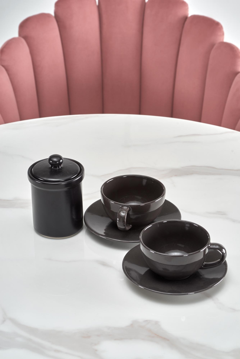 MORATA stół okrągły, biały marmur / czarny / złoty Stół okrągły MORATA to wyjątkowy element wyposażenia, który wniesie elegancję i nowoczesność do każdego wnętrza. Jego znakomity blat wykonany z MDF okleinowanego w eleganckim białym marmurze tworzy efektowny kontrast z solidną podstawą w odcieniach czerni i złota. Stół o średnicy 79 cm i wysokości 74 cm doskonale sprawdzi się w zarówno w przestronnych salonach, jak i mniejszych jadalniach, oferując wystarczająco dużo przestrzeni dla rodziny i przyjaciół w trakcie spotkań. Na uwagę zasługuje także jego nowoczesna konstrukcja, bazująca na stali malowanej proszkowo oraz stali nierdzewnej, co gwarantuje nie tylko trwałość, ale również elegancki wygląd. Wyrafinowane połączenie czarnej podstawy ze złotymi akcentami nadaje stołowi luksusowego charakteru, idealnie wpisując się w trendy stylu glamour. Dzięki zastosowaniu wysokiej jakości materiałów, stół MORATA jest odporny na codzienne użytkowanie, co sprawia, że świetnie nadaje się zarówno do użytku domowego, jak i w restauracjach czy kawiarniach. Dodatkową zaletą tego stołu jest jego uniwersalność. Jego minimalistyczny, a zarazem wyszukany design sprawia, że wpasuje się w wiele aranżacji wnętrz – od nowoczesnych po klasyczne. Idealnie komponuje się z różnorodnymi krzesłami, pozwalając na stworzenie harmonijnej przestrzeni sprzyjającej relaksowi i spotkaniom towarzyskim. Stół ten nie tylko zwraca uwagę swoją formą, ale również przyciąga wzrok jako dekoracyjny element wystroju. Wymiary: fi 79 cm, wysokość 74 cm Materiał: MDF okleinowany, stal malowana proszkowo, stal nierdzewna Kolor: blat - biały marmur, nogi - czarny / złoty Styl: nowoczesny, elegancki, glamour Przeznaczenie: dom, restauracje, kawiarnie Produkt objęty jest gwarancją producenta na 24 miesiące. Stół wymaga samodzielnego montażu, a szczegółowa instrukcja została dołączona do przesyłki.