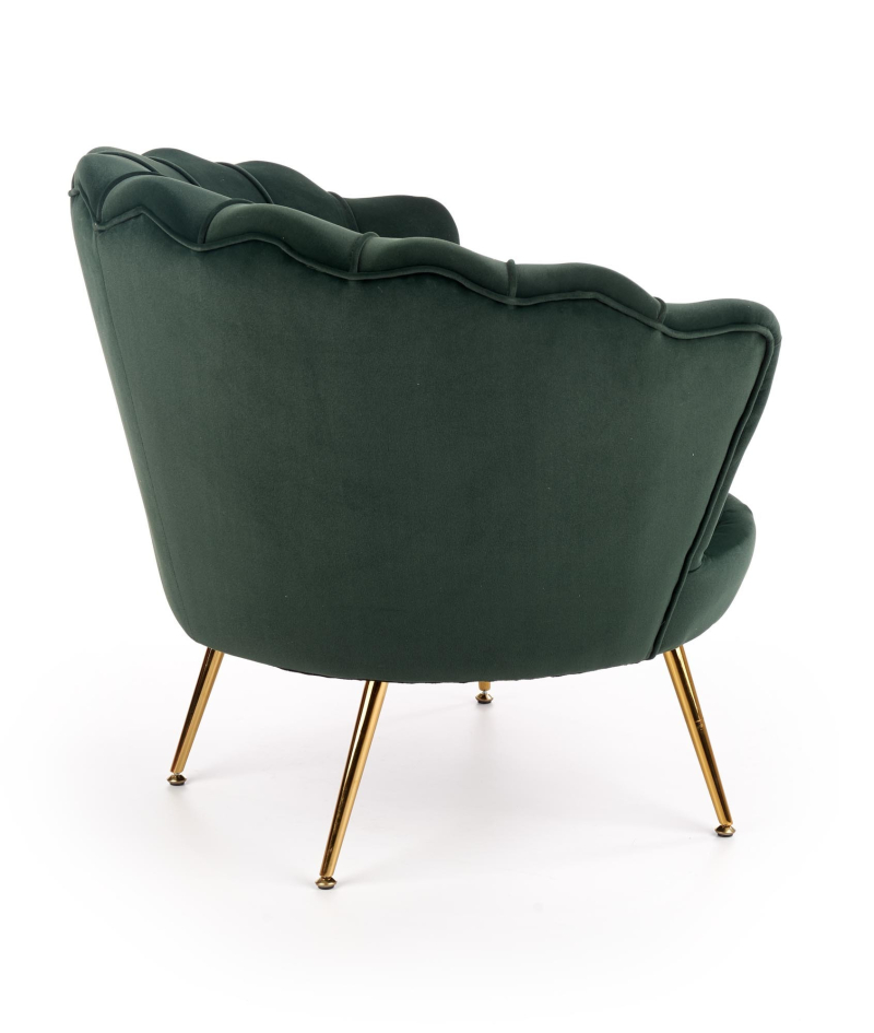 Fotel klubowy AMORINITO to idealna propozycja dla osób, które cenią sobie elegancję oraz wygodę w każdym wnętrzu. Jego ciemnozielona tapicerka z efemerycznego weluru sprawia, że mebel nabiera luksusowego charakteru, a złote nogi doskonale podkreślają estetykę i nowoczesność designu. Fotel doskonale komponuje się zarówno w klasycznych, jak i nowoczesnych aranżacjach. Główne cechy fotela AMORINITO: